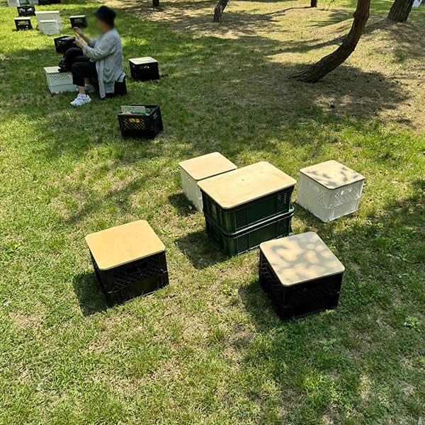 캠핑 분위기가 물씬나는 우유박스.
