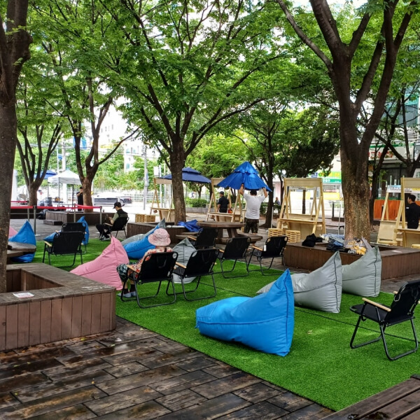 비(이슬)에 젖어 축축한 빈백에 앉고 싶지 않아요.
